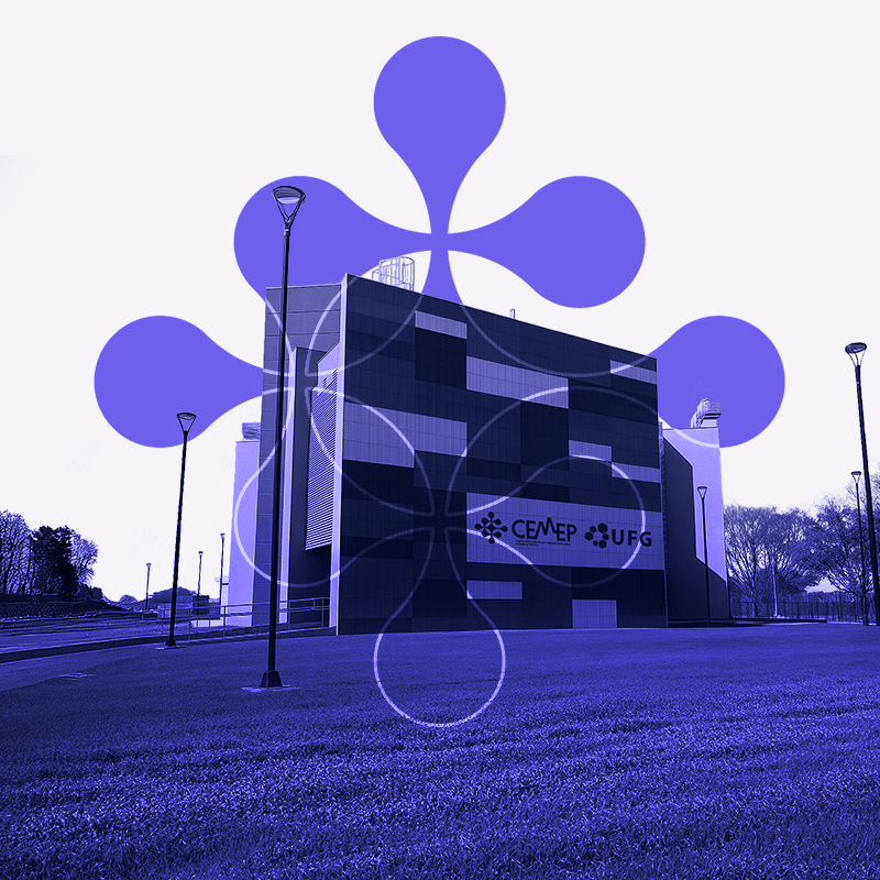 prédio cemep com efeitos roxos e símbolo da marca